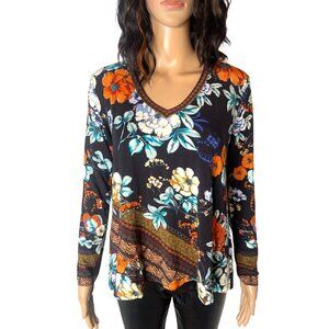 Johnny Was Golden Spring Favorite Floral V Neck Swing Top Black Size XS