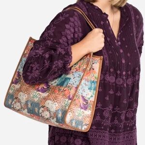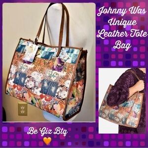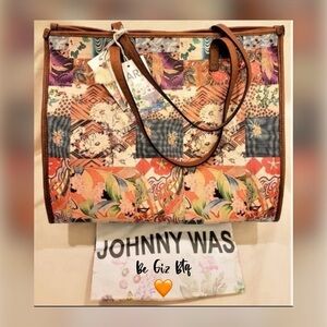 🆕 Johnny Was Grace Iconic Patchwork Tote Bag Tan Leather Iconic Patchwork Design