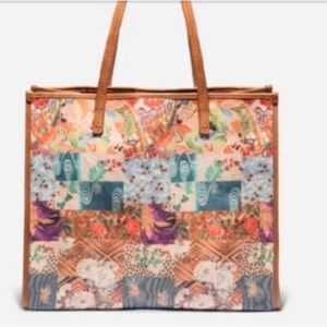 NWT Johnny Was Grace Iconic Patchwork Tote Bag in Tan Leather with Iconic Chic Patchwork Design