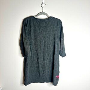 Johnny Was Gray V-Neck Floral Embroidered Jersey Knit Tee Rolled Cuff Sz L