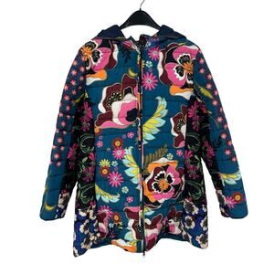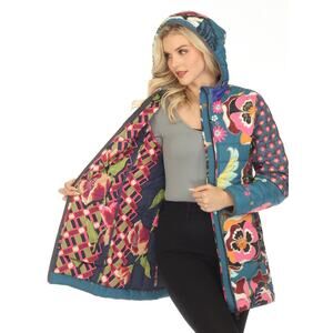 Johnny Was Hazel Multi Mixed Print Zip Front Hooded Puffer Jacket Womens XXL