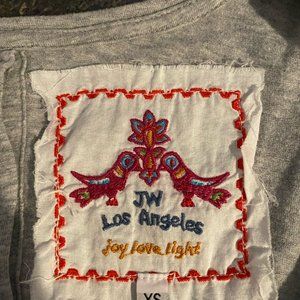 Johnny Was Heather Grey Embroidery T-Shirt with Back Buttons