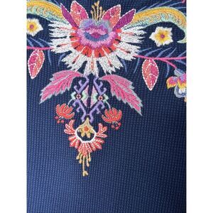 Johnny Was Ioana Thermal Long Sleeve Top Embroidered Waffle Boho Navy Sz M