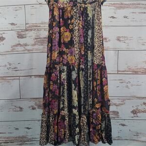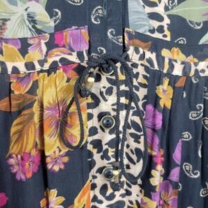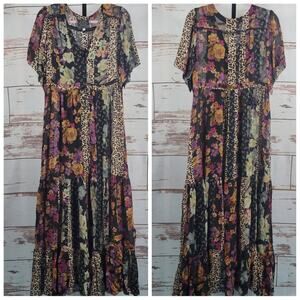 Johnny Was Isabis Tiered Maxi Dress Black Floral Animal Print Size Small
