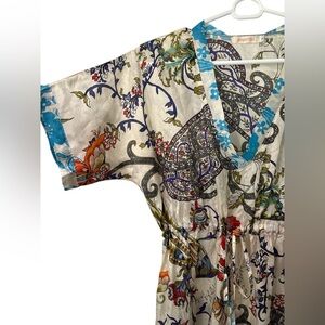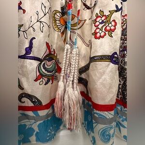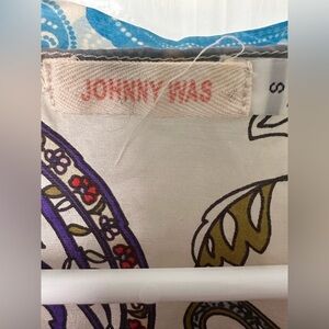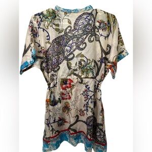 Johnny Was Ivory Floral Silk Short Sleeve V Neck Tunic Top Women’s S