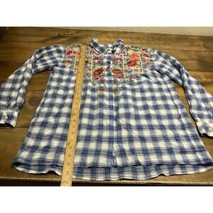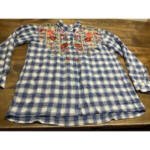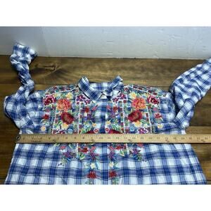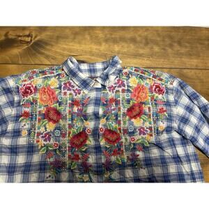 Johnny Was J3 Workshop Button Up Embroidered Floral Plaid Blouse Small