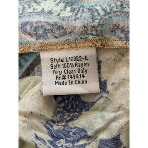 This Johnny Was blouse features a striking mix of floral and geometric patterns. Its lightweight rayon material is ideal for all seasons.