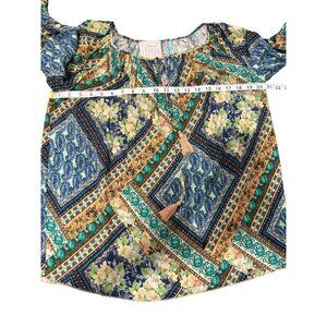 Johnny Was JADE Miza Patchwork Blouse Peasant Boho Top Long Sleeve Tassel Size S