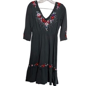 Johnny Was JW LA Gray Floral Embroidered Boho Peasant Dress