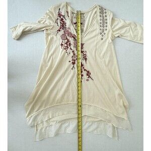 Johnny Was JW Los Angeles Tunic Shirt Womens XS Ivory Embroidered V Neck Boho