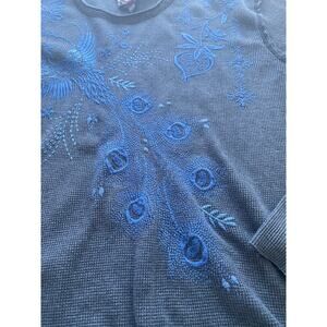Johnny Was JWLA Blue Pullover Thermal Waffle Embroidered Top Blouse Tunic