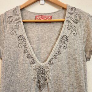 Johnny Was JWLA Floral Embroidered Gray Jersey Dress M Boho Artsy Y2K Feminine
