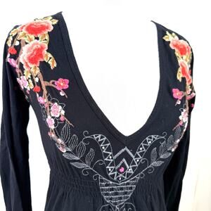 Johnny Was JWLA Floral Embroidered Long Sleeve V-Neck Dress Size XS