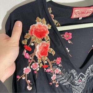 Johnny Was JWLA Floral Embroidered Tunic Mini Dress Bohemian Festival Breathable