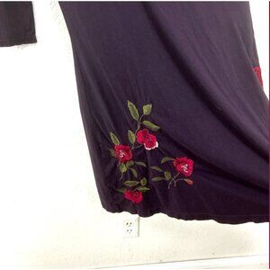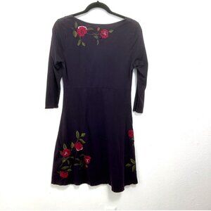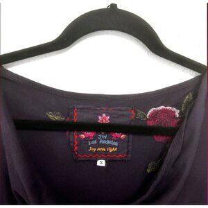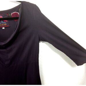 Johnny Was JWLA Purple Embroidered Floral Roses Cotton Cowl Neck Shift Dress S