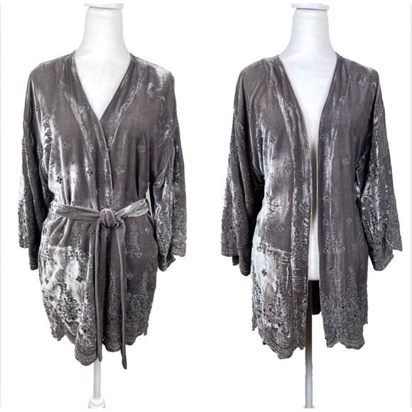 Johnny Was Jade Axel Velvet/Silk Eyelet Kimono Jacket. Size XS.