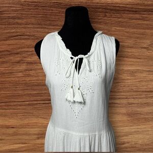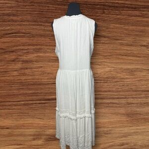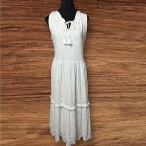 Johnny Was Jade Dress Midi White Embroidered Eyelet Boho Tiered Lined SZ L Cotta