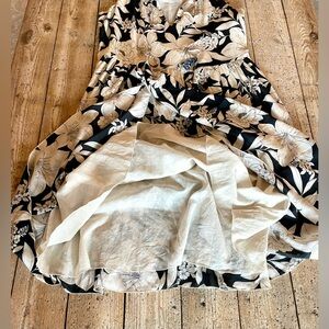 Elevate your bohemian wardrobe with this stunning Johnny Was Jade Collection Juliette Silk Dress, size Medium. Crafted in luxurious 100% silk, this dress features a tiered A-line silhouette with a flattering v-neckline and flowing drape. The black and beige floral print makes it versatile for year-round wear — from summer events to layered fall looks.