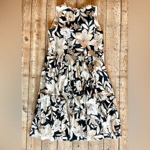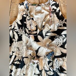 Johnny Was Jade Juliette Silk Tiered A-Line Dress Floral Black Beige M