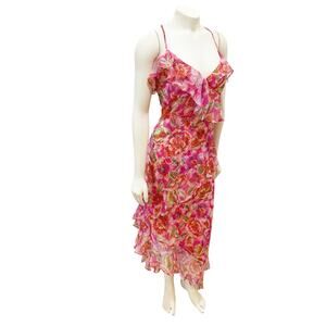 Johnny Was Jade Katella Midi Silk Stretch Ruffle Pink Dress XL