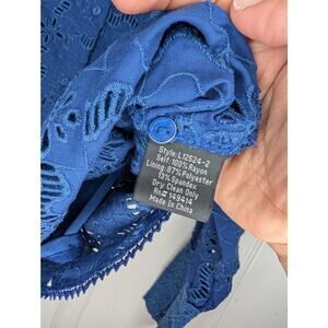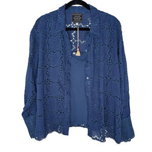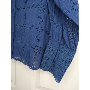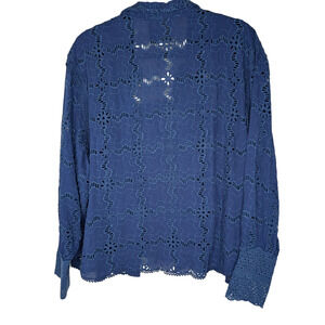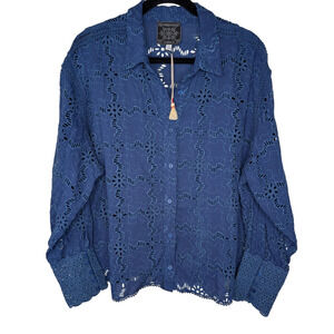 Johnny Was Jade Marina Joy Rayon Shirt Blue Eyelet Button Down Long Sleeve