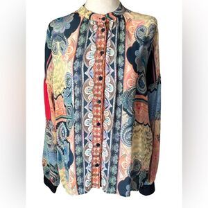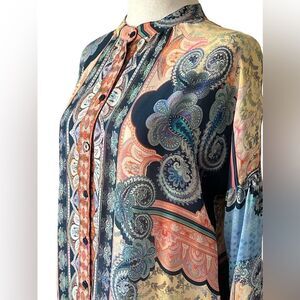 Johnny Was Jade Onda Button Down Blouse Boho Paisley Relaxed Fit Size S