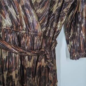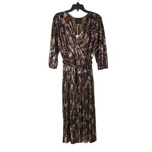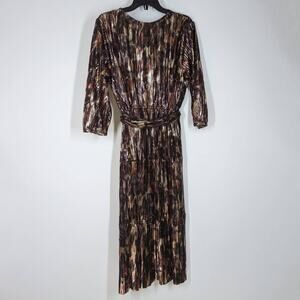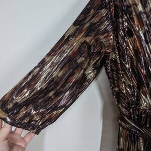 Johnny Was Jade Tina Wrap Midi Dress Brown Metallic Belted V-Neck Womens XL NWT