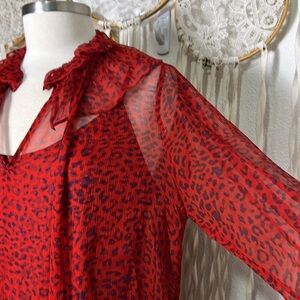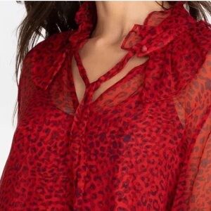 Johnny Was | Jade Whitney Ruffle Silk Blouse in Red and Navy Size M with Slip