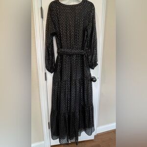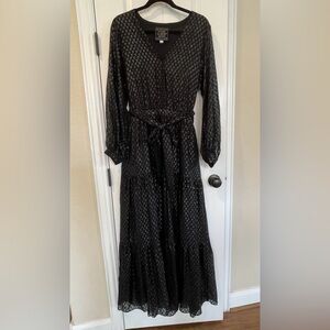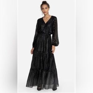 Johnny Was Jade Yobain Silk Maxi Dress Black M Tiered Long Sleeve Boho Luxe