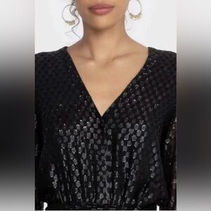 • Long sheer sleeves with elastic cuffs