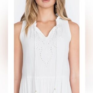 The gorgeously simple white crinkle cotton gauze cut of our Ziva Tiered Dress make this the perfect piece for any special occasion or event — from bridal showers to garden parties. The elegant v-neckline and sleeveless design accentuate the laid-back flowy fit. Pair with simple strappy sandals and minimal jewelry for an effortless boho look.