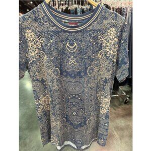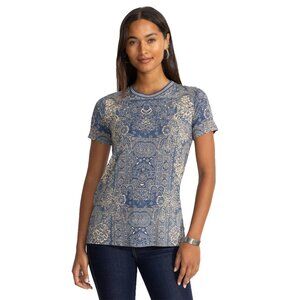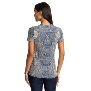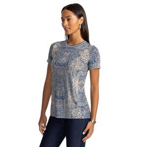 Johnny Was Janie Favorite Short Crewneck Denim Blue Embroidery Tee Shirt Top NEW