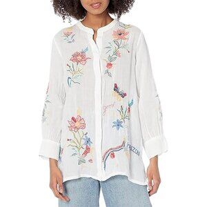 Johnny Was Jordan Voyager Tunic Shirt Floral White Flower Embroidery Top NEW