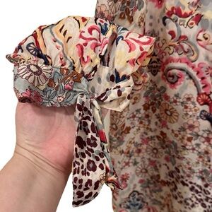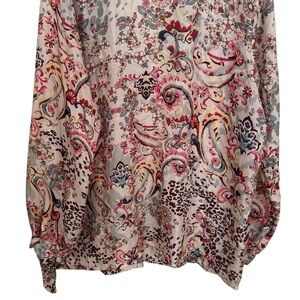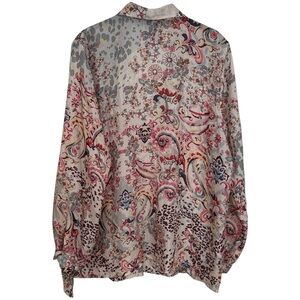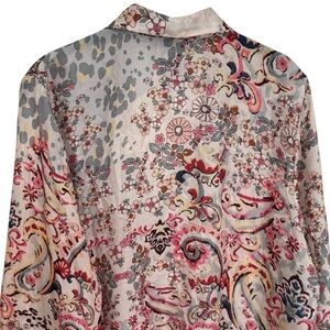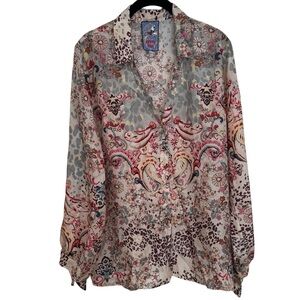 Johnny Was Jungle Paisley Rasvana 100% Silk Lightweight Button Blouse Size L