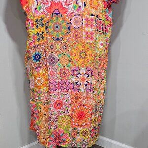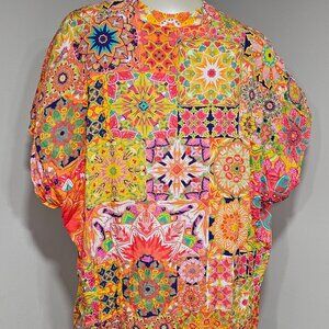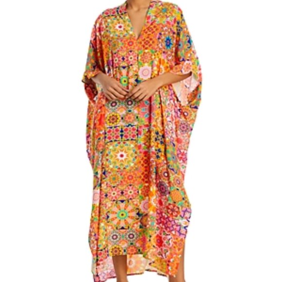 Beautifully detailed with vibrant blooms, the Kaleida Kaftan creates a stunning relaxed silhouette. Thoughtfully designed with a Nehru collar leading to an open V-neckline, this flowing kaftan offers generous sleeves and a maxi length skirt. Layer over Kaleida swimwear and pair with espadrille wedge heels for a polished poolside look.