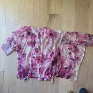 Johnny Was Katia Floral Silk Blouse Women's L/XL Multicolor Oversized Party Glam