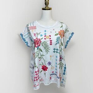 🌺 Johnny Was Katie Relaxed Drape Tee • Small • Embroidered • Worn 1X 🌺