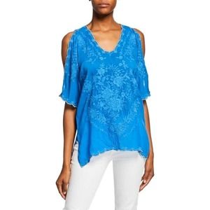 Johnny Was Kelly Cold-Shoulder Georgette Blouse w/ Tonal Embroidery 3X Boho Chic