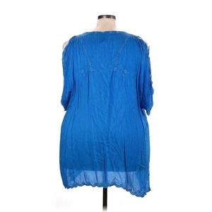 This cold shoulder blue Kelly tunic top will soon be your favorite with its tonal embroidery and easy fit.