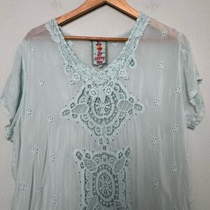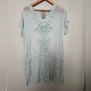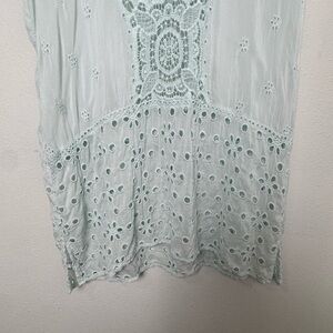 Johnny Was Kelso Lace Eyelet Tunic Lightweight Top in Arctic Mint Arctic Mist Size Large
