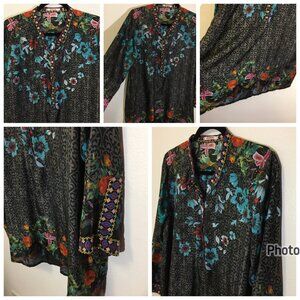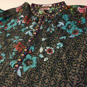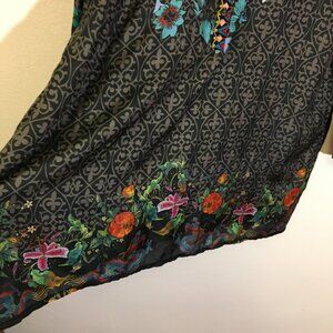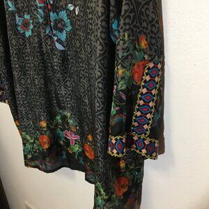 Johnny Was Kennedy Silk Embroidered Tunic Top Blouse Dragons Floral Artsy (IB)