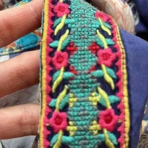 Multicolor floral embroidery trim with side pockets, pre-owned