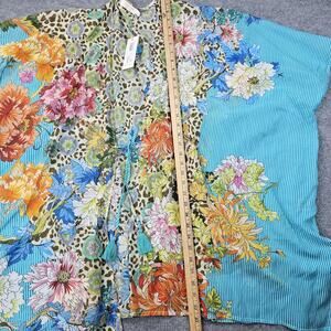 Johnny Was Kimono Womens L/XL Blue Leopard Floral Short Coastal Colorful Layer