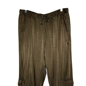 Johnny Was L Womens Ramble Cargo Utility Joggers Pants Satin Brown Gorpcore
