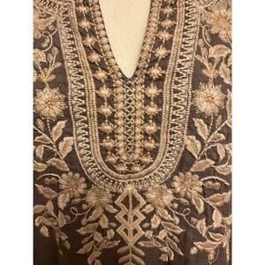 Johnny Was LA Kemi 100% Linen Embroidered Peasant Top Taupe Sz Medium