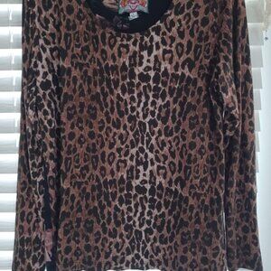Johnny Was LA Women’s S Long Sleeve Leopard Print Bamboo/Spandex Top – Boho Chic