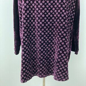 Johnny Was Larissa Velvet Floral Embroidered Tunic Top Size M Purple Silk Rayon