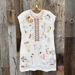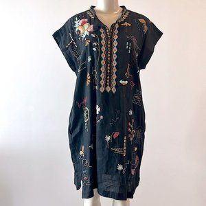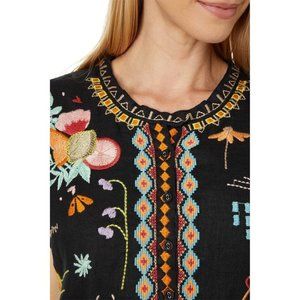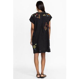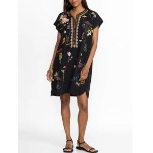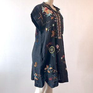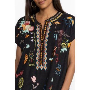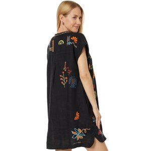 Johnny Was Lemona Dress Floral Embroidery Linen Button Short Flowers Black NEW