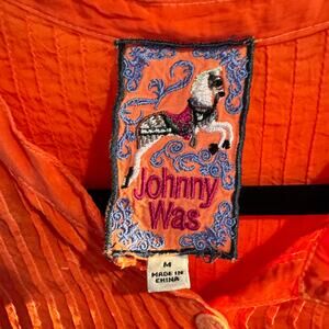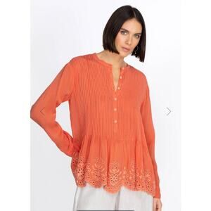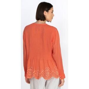 Johnny Was Leonie Pintuck Blouse Orange Embroidered Button Long Sleeve Sz M