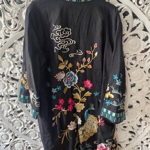 Johnny Was Linen Summer Coat, Black with elaborate embroidery, Size large